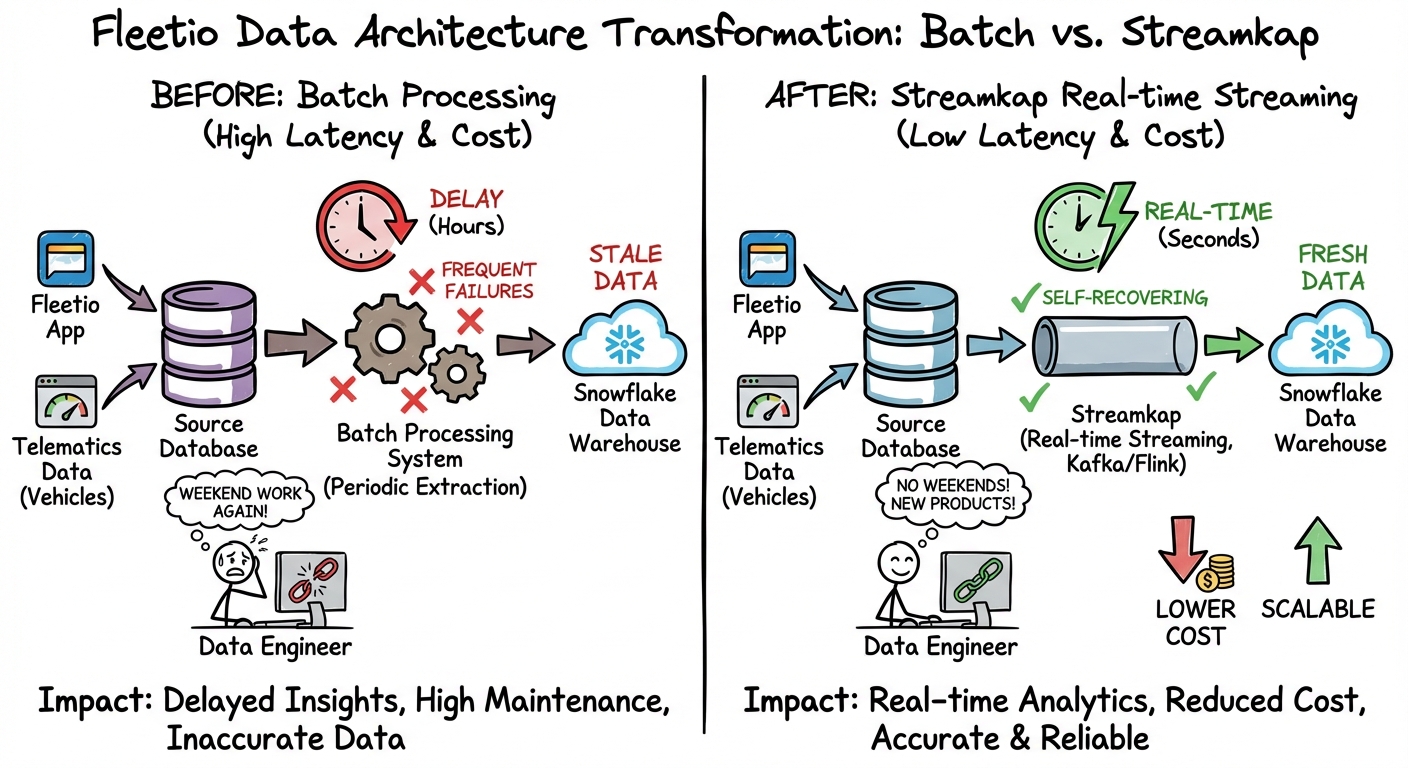 Streamkap offered Fleetio a real-time streaming solution that addressed the pain points of their previous batch processing system: