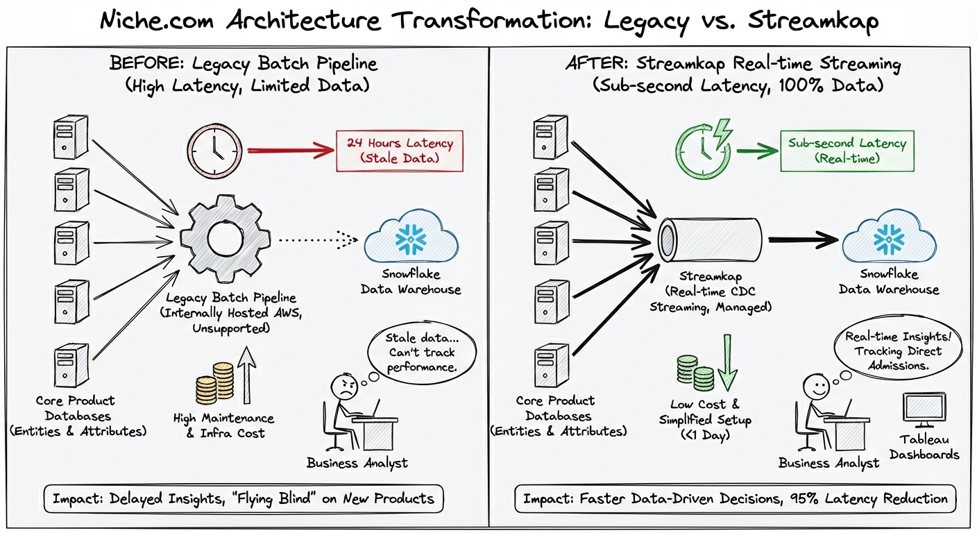 How Streamkap Reduced Niche.com's Data Latency from 24 Hours to Near Real-Time